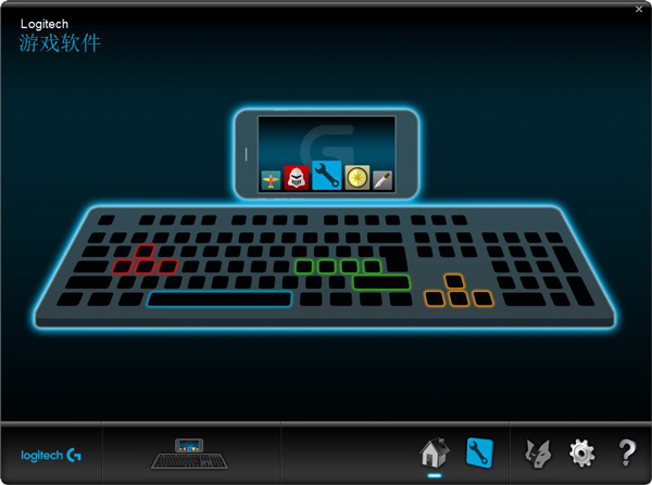 2、右上角有一个小鼠标(板载内存)和一台电脑(自动游戏检测)的图样。由于板载内存里可设置宏命令但是无法循环,所以在这里我们选择自动检测选项,使用它来进行宏命令的设置。