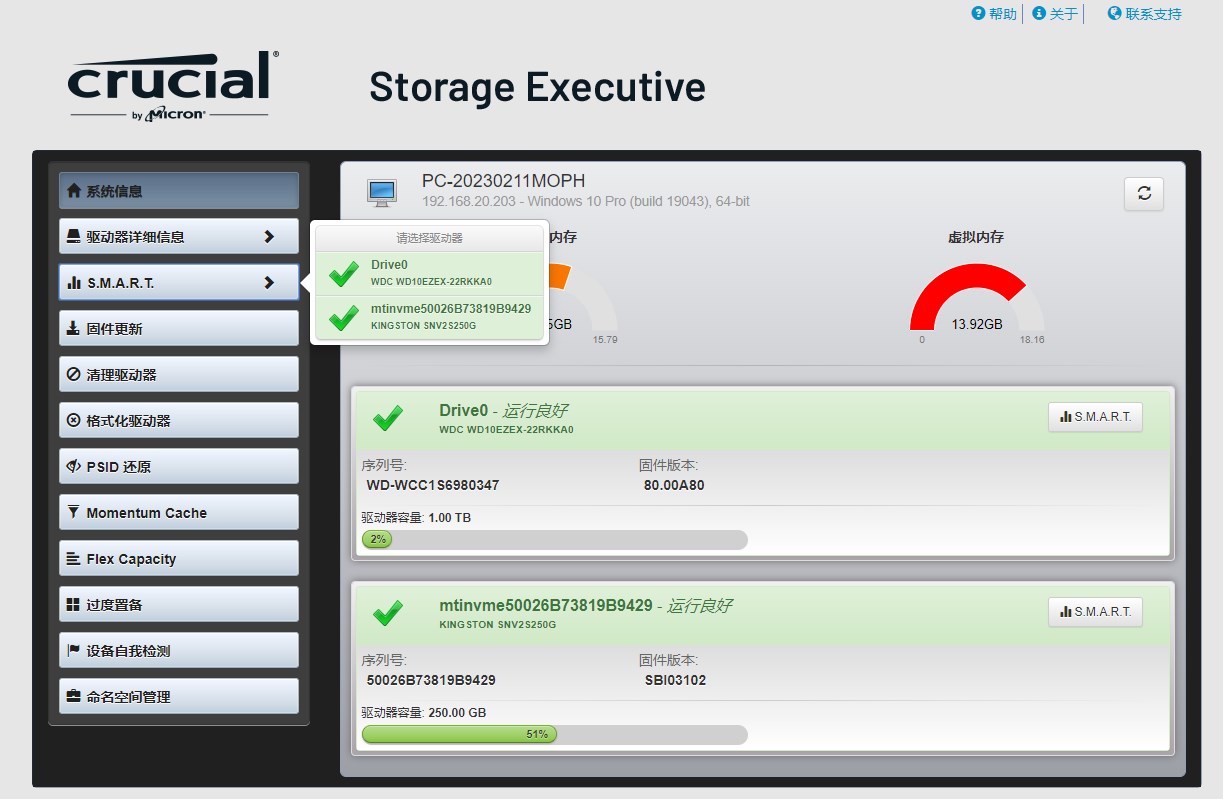 Storage Executive官方版是一款英睿达镁光官方推出的固态硬盘管理工具,支持M500、M500DC、M510、M550、M600,以及零售的Crucial产品,它能够支持多国语言当然也有中文,其具备了固件更新、硬盘监控和密码重置等丰富实用功能,当然还有很多其他功能下面小编会一一为大家进行简单的介绍,本软件适用于所有的镁光SSD硬件,只要你的是镁光品牌的都可以使用本工具。