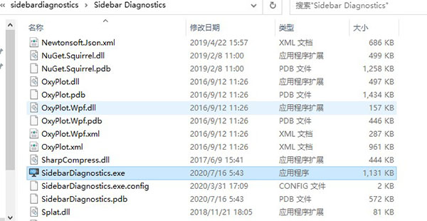 1、在本站下载解压后,在Sidebar Diagnostics文件夹中找到SidebarDiagnostics.exe双击打开。