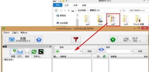1、运行FreeFileSync后,拖拽要同步的文件夹到左侧,即可自动添加该文件夹的路径到程序中
