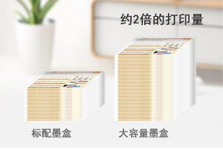 3、大容量独立式墨水盒提供大容量独立式墨水盒选购,打印量比标准装墨水盒提高约2倍,畅享文档与照片打印的经济与实惠。还有特大容量黑色墨盒提供,满足商务大量文档打印需求。高速文档与照片打印A4黑白文档打印速度约14.5ipm,A4彩色文档打印速度约10.4ipm,4x6寸照片打印速度约为36秒,带来高速打印体验