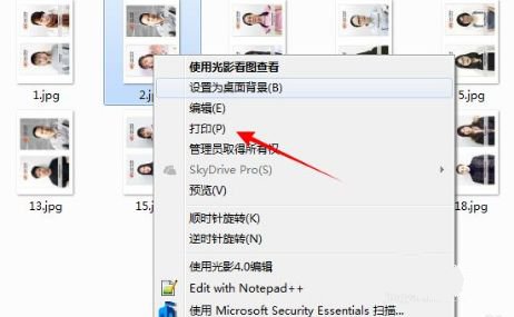 1、选择打印菜单右击要打印的照片,选择【打印】菜单;