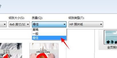 质量列表中选择照片打印的质量,“最佳”打印出来的效果最好;