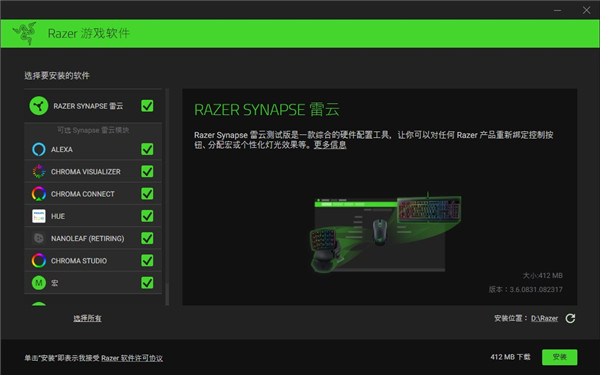 2、我们安装之后就可以看到它能够快速的访问我们所有的雷蛇硬件,快速进行配置操作