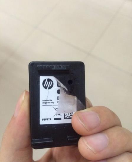 1、确认注入点,黑色墨盒一般在右上角,将包装贴从右上角轻轻撕开,可以发现一个小圆孔,这就是我们墨水的注入点