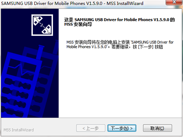 2、双击打开,进入三星手机usb驱动软件界面,点击下一步