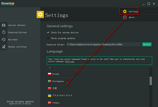 DriverHub官方版如何设置中文