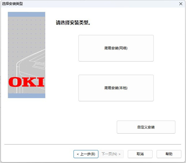 5、选择安装类型,可选网络简易安装或本地简易安装,当然若用户想自定义则可点击“自定义安装”自定义安装打印机的安装路径或功能,完成点击下一步