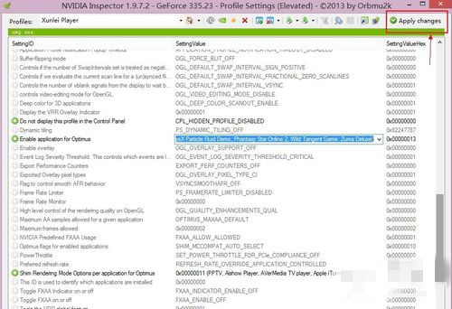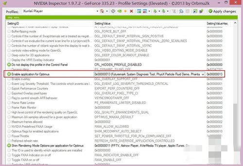 4、拖动滚动条,找到“Enable application for Optimus”项,将其改为0x00000013(可手动填写)