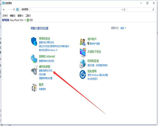 3、在控制面板里,找到设备和打印机选项,点击。