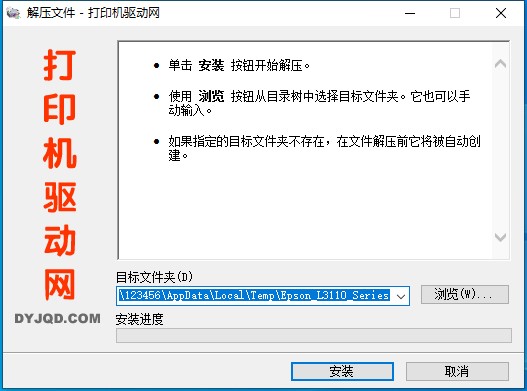 3、电脑默认为【C:\Users\ADMINI~1\AppData\Local\Temp\爱普生Epson L3118驱动】地址,当然你也可以选择其他的安装目录。