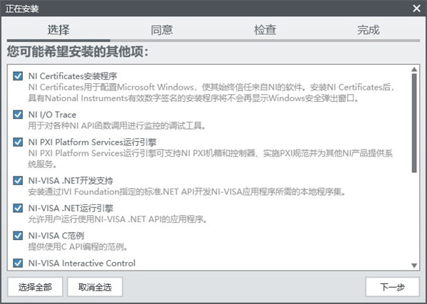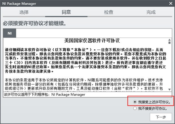 1、在本站下载压缩包,进行解压得到NI-VISA安装程序2、进入驱动器运行安装程序“Install.exe”,选择(我接受许可协议的条款),再点击下一步;