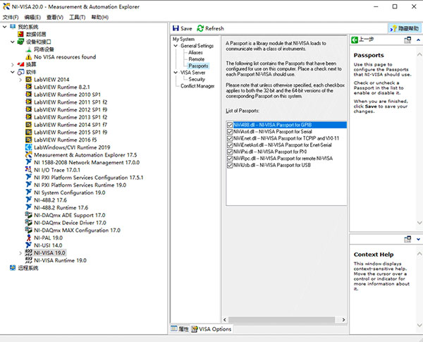 3、开发环境和GPIB硬件等NI产品随附NI-VISA开发许可证。 NI-VISA运行发布许可证随附于发布完毕的系统,该系统包含NI硬件、NI开发环境和通过NI开发环境编写的应用程序。