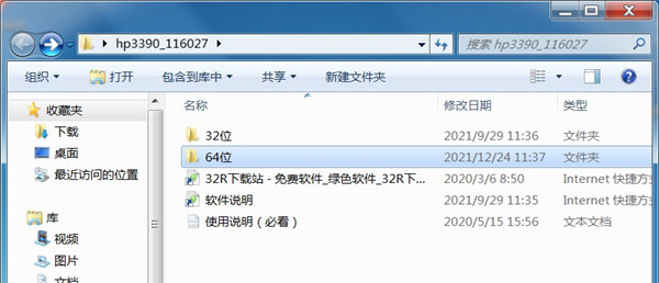 1、从本站下载惠普3390驱动压缩包后,将其解压后即可看到32/64位的驱动适配版本;