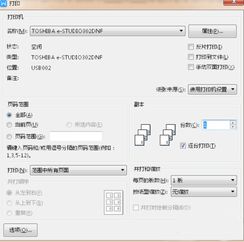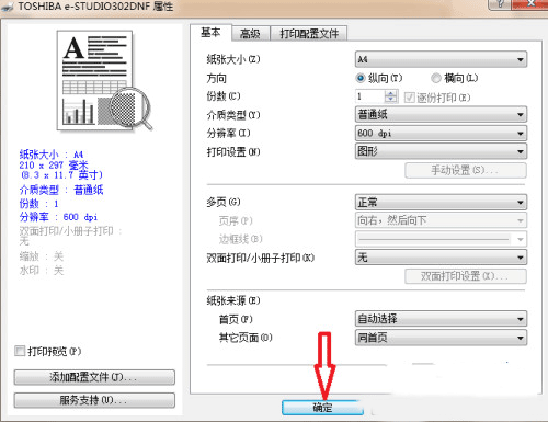 7、当我们点击属性界面的确定按钮后,就会自动回到打印界面。
