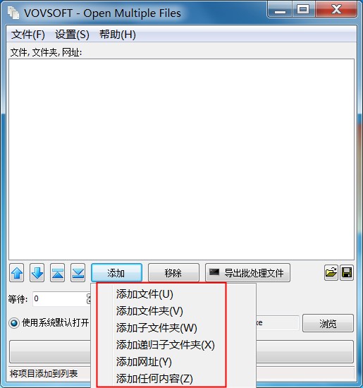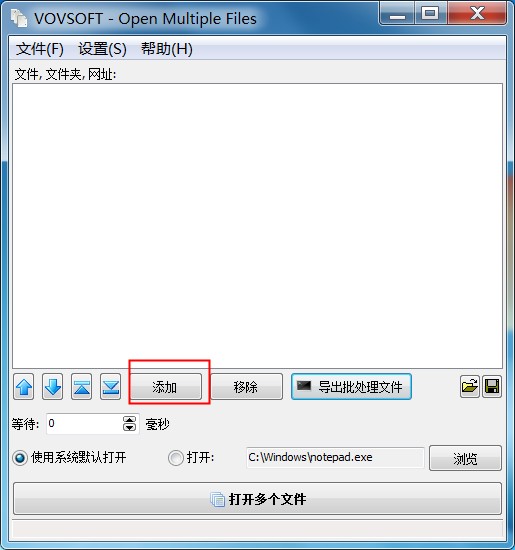 1、下载解压,打开软件Open Multiple File文件多开器,点击添加要打开的程序或者文件;