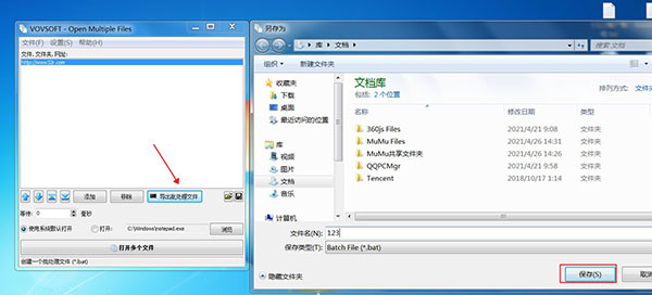 4、另外,该软件还支持导出批量文件,保存为.bat形式,方便之后一键打开界面。