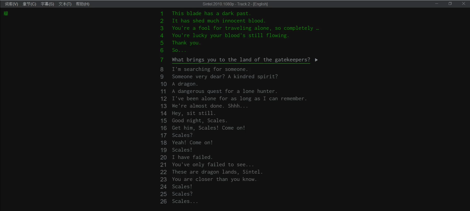 8、用 MKV 视频或字幕生成的词库,可以链接到用文档生成的词库或内置的词库。下面着张图片表示,电影 Sintel 的所有字幕中,有 9 条字幕,匹配了四级词库中的 6 个单词。
