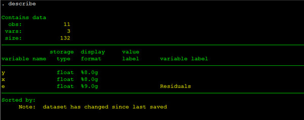 输入这个命令之后,可以看到对内存中存在的数据的描述,如11个观测案例、3个变量。