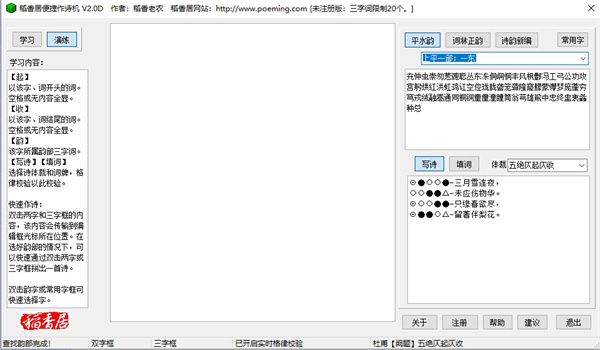 6、F区:格律校验区。实时格律校验,满4句或8句,提供押韵校验。