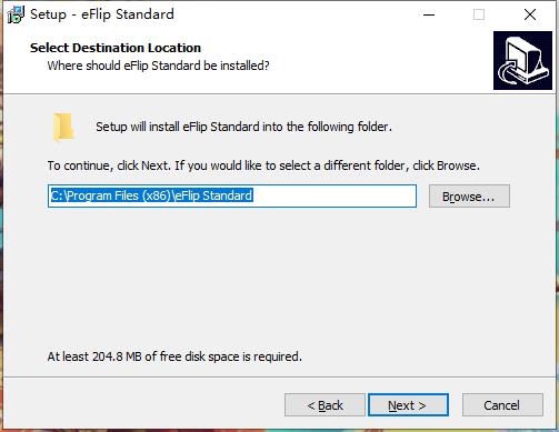 安装向导默认设置的软件默认安装路径为C:\Program Files (x86)\eFlip Standard