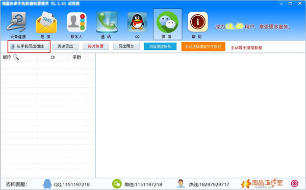 安卓手机中的QQ聊天数据存放在手机的“/data/data/com.tencent.mobileqq/”目录中,需要有ROOT权限 才能操作此目录。1、在电脑上下载"淘晶安卓手机数据恢复精灵",把手机用数据线连接电脑。