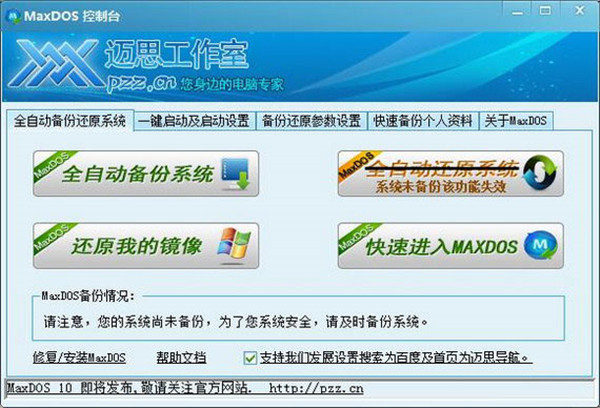 3、MaxDOS支持进入DOS时设置密码。支持一键启动。个人资料及宽带帐号密码备份恢复