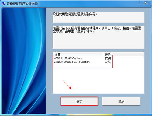 6、然后再点击确定,安装VCD01 USB AV Capture和VIDBOX Unused CIR. Function设备驱动