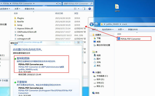 8、将破解补丁里的文件复制到“PDFdu\PDFdu PDF Converter”文件目录下进行替换;
