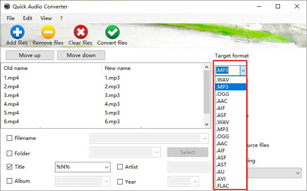 3、设置音频转换格式