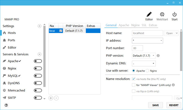 MAMP PRO现在支持Nginx。Nginx是HTTP和反向代理服务器,邮件代理服务器和通用TCP / UDP代理服务器。据Netcraft称,Nginx在2016年6月份担任或占有27.61%最繁忙的网站。