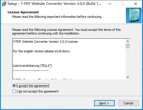 1、下载软件压缩包文件,直接点击“7-PDFWebsiteConverter.exe”,选择语言进行安装