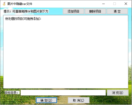 HideRarInImage是一款可以将rar、zip、mp4、exe等文件隐藏成一张图片的工具,也叫图片中隐藏rar文件,它可以把重要的文件隐藏在图片中,极难被人发现。