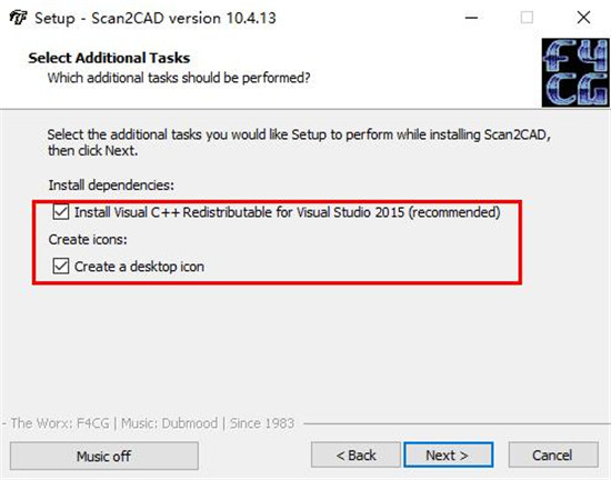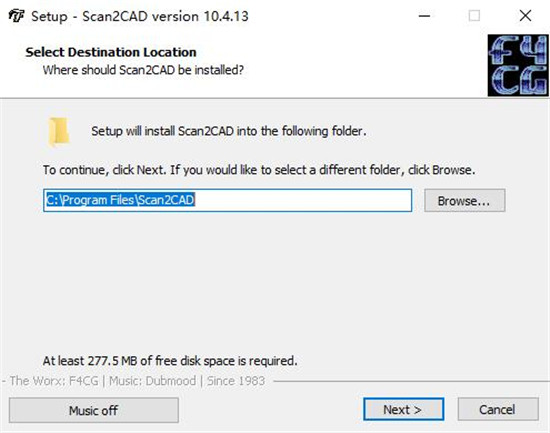 2、接着双击,运行f4cg-scan2cad10413-setup.exe开始安装;默认安装目录