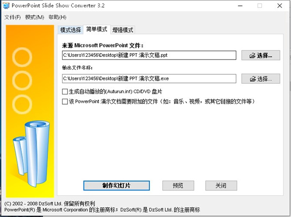 简单模式不会改变源文件任何东西,可以保留自设动画、连接以及其他活动元素。