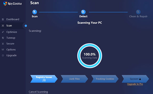 5、查看扫描结果:扫描完成后,SpyZooka会显示出扫描结果,包括发现的问题数量和类型。
