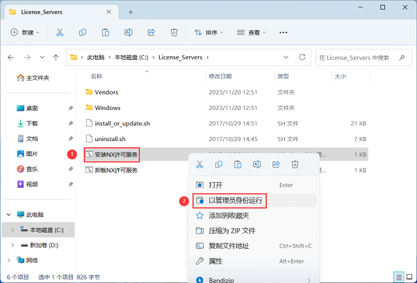 4、找到【安装NX许可服务】应用程序,右键选择【以管理员身份运行】它。