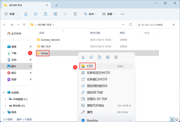 6、回到UG NX 10.0文件夹,找到【Setup】文件夹,右键【打开】它。