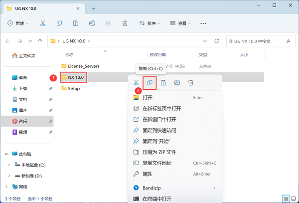 26、回到UG NX 10.0文件夹,找到【NX 10.0】文件夹,右键点击【复制按钮】。