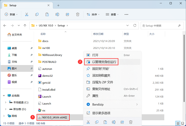 7、找到【NX10.0_JAVA-x64】应用程序,右键选择【以管理员身份运行】它。