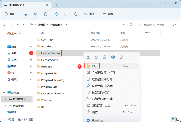 3、找到粘贴的【LicenseServer】文件夹,再右键【打开】它。