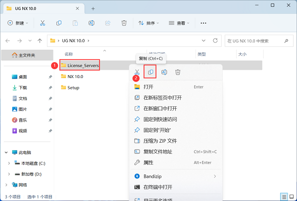 1、下载完成后找到【LicenseServer】文件夹,右键点击【复制按钮】。