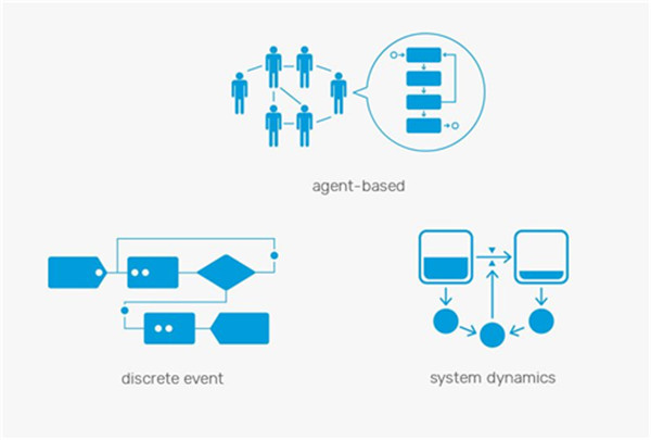 使用一款软件将三种建模方法任意组合,对任何复杂程度的业务系统进行仿真。在AnyLogic中,您可以使用多样的可视化建模语言:过程流程图、状态图、行动图、存量及流量图。