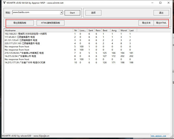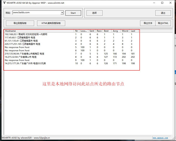 WinMTR中文版名词解释