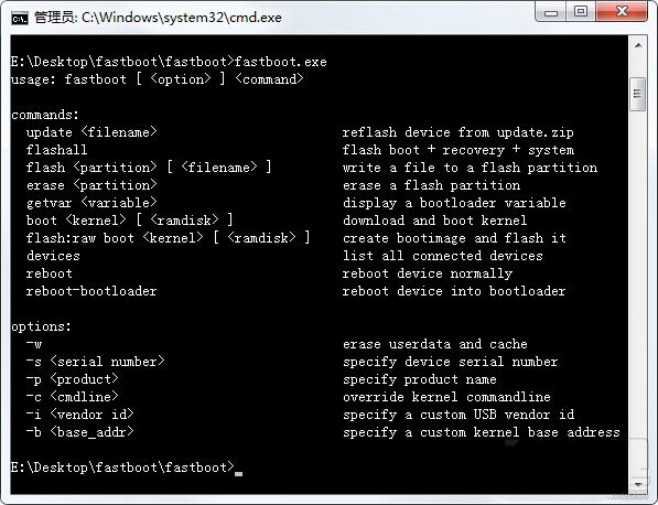 1、-w 清空用户数据分区和缓存分区.相当于recovery中的"wipe data/factoryreset"2、-s <串口号> 置顶要操作的设备的串口号