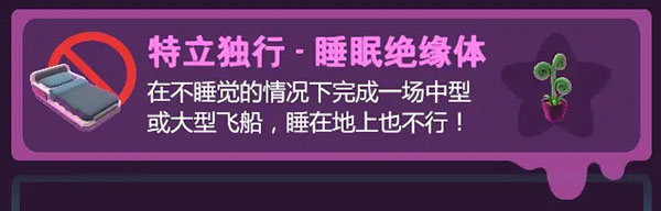 2、在不睡觉的情况下完成中型或大型飞船,睡地上也不行,之前的时候可以玩家互相泼水清醒,但是这次更新移除了泼水降低体力值,唯一的办法是,让已经解锁植物的玩家带你完成该成就。