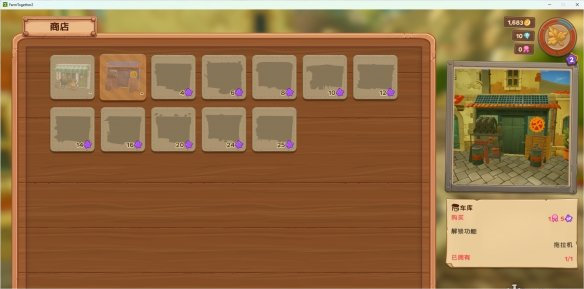 农场等级升到一定等级后玩家可解锁商店的车库。