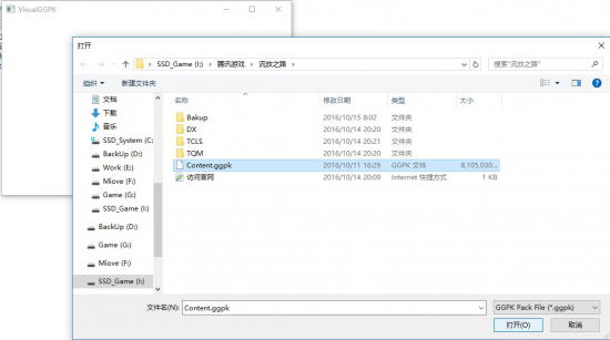 3、打开 VisualGGPK.exe 选择 Content.ggpk 文件(我的安装位置:I:腾讯游戏流放之路)