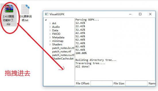 5、把补丁文件(如:2.4.0国服功能补丁) 拖拽到补丁软件左边空白处