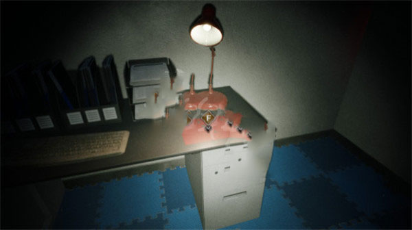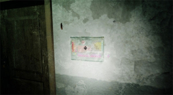 2、与门锁互动触发剧情,此时根据左侧贴纸的提示迅速跑至1楼的舍监室,在有台灯亮起的桌子上找到密码盘(6)[用品]。